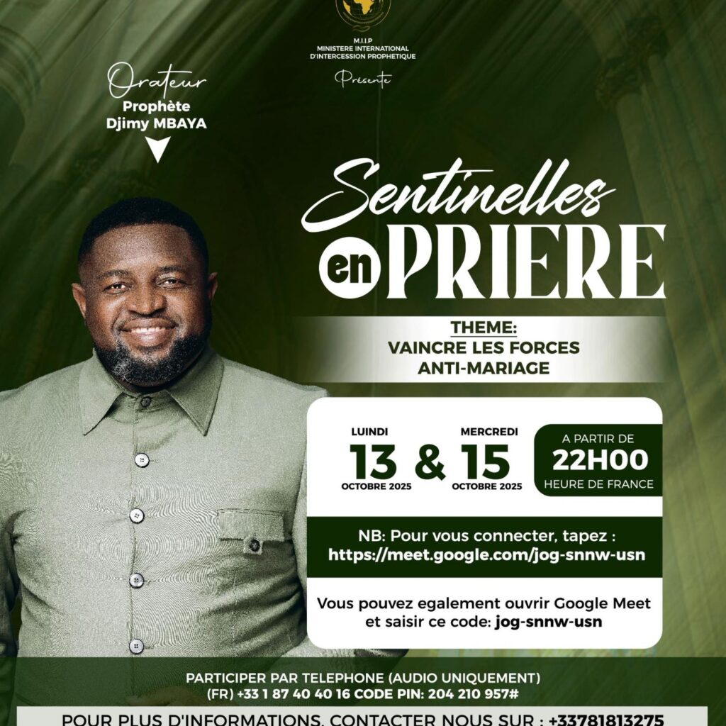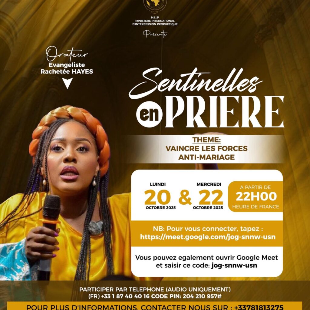 Rejoignez les sentinelles du Royaume pour des temps puissants d’intercession, de proclamation et de révélation prophétique.